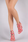 This alluring heel features a cutout nubuck upper with two adjustable ankle straps and wrapped stiletto heel. Finished with a lightly padded insole and open toe silhouette.
