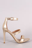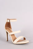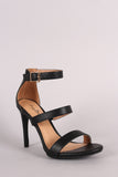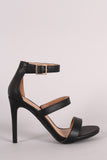 This lovely heel features an open toe silhouette, triple straps construction, and wrapped stiletto heel. Finished with a lightly padded insole and adjustable ankle strap with buckle fastening.