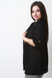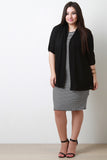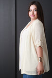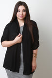 This plus size cardigan features a thermal knit fabrication, open front construction, drop shoulders, and finished with three quarter button-tab sleeves. Accessories sold separately. 88% Rayon, 12% Polyester.