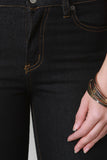 These denim jeans features a dark wash, contrasting stitching details, straight cut legs, classic 5-pockets, belt loops, zipper fly and a single button closure. Accessories sold separately. 80% Cotton, 17% Polyester, 3% Spandex.