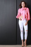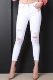 These stylish jeans feature distressed accents at front, low rise silhoutte, classic 5-pockets, belt loops, frayed hems and zipper fly with a single button closure. Accessories sold separately. 97% Cotton, 3% Spandex.
