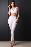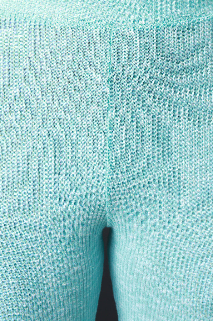 This high waist leggings features a rib knit fabrication, elasticized waistline, and stretchy taper cut legs. Accessories sold separately. Made in U.S.A. 95% Cotton, 5% Spandex.