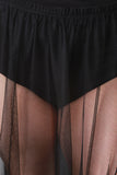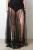 This plus size maxi skirt features a semi-sheer tulle overlay with a high vent slit front, elasticized waist, and brief underlay. Accessories sold separately. Made in U.S.A. 100% Spandex. Contrast: 95% Cotton, 5% Spandex.