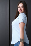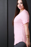This comfy top features a v-neckline, short roll tab sleeves with button accent, and rounded hemline. finished with lightweight material for all day comfort. Accessories sold separately. Made in U.S.A. 95% Rayon 5% Spandex.