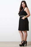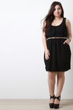 This lovely plus size dress features ruched scoop neckline, sleeveless construction, two pockets, elasticized waist, lining, and finished with removable skinny belt. Accessories sold separately. 100% Polyester.