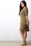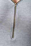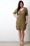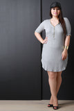 This plus size dress features an adjustable zippered v neckline, thermal knit fabrication, half sleeves, finished with a rounded hemline. Accessories sold separately. 97% Rayon, 3% Spandex.