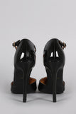 This ladylike pump features a pointy toe front, enclosed back with stiletto heel, and narrow t-strap construction with elastic gusset and adjustable buckle closure. Finished with a lightly padded insole.