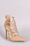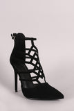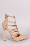 This sexy pump features a pointy toe silhoutte, laser cutout pattern, and wrapped stiletto heel. Finished with a lightly cushioned insole, side buckle, and rear zip-up closure for easy on/off.
