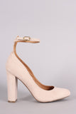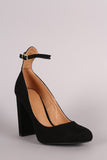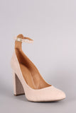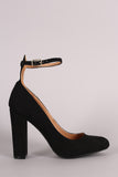 This alluring pump features an almond toe silhouette, scooped vamp, single sole, and chunky wrapped heel. Finished with a lightly padded insole and adjustable ankle strap with buckle fastening.
