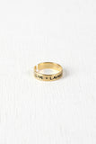 This ring features an open-ended brushed metallic band with the inscription, "Live Laugh Love." Not adjustable.