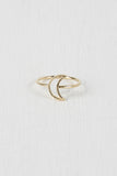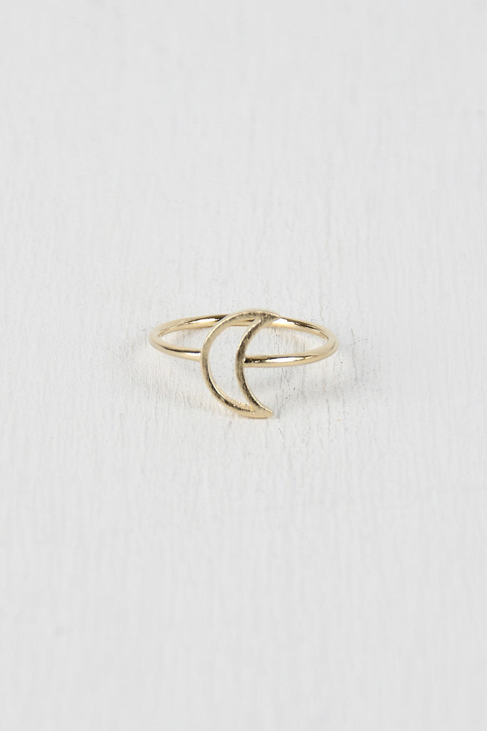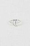 This ring features a thin non-adjustable band with a cutout crescent moon at the center.