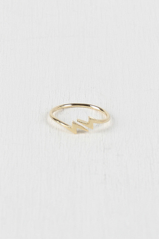 This open-ended ring features lightning bolt designs at the ends and a thin non-adjustable band.