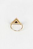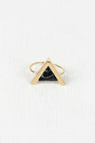 This eye-catching ring features a faux pyramid triangle gemstone center and open-ended band. Non-adjustable.