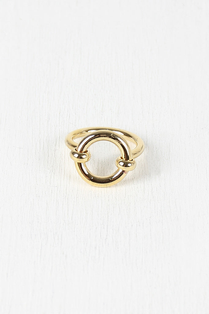 This cute ring features a cut out circle design with a high polish metal band. Non-adjustable.
