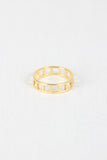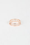 Brushed metal ring featuring an all-over square cut out design on a non-adjustable band.