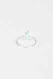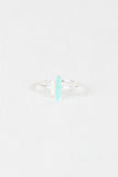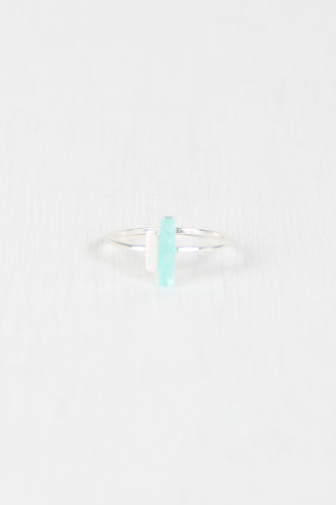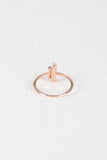 This delicate ring features a high polish finish and an asymmetrical double bar detail with stone ant metal on a non adjustable band.