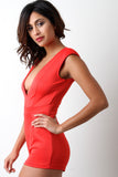 This chic romper features a soft stretchy knit fabrication, deep v-neckline, padded wide shoulders, and pleated bottom shorts. Finished with a rear zip-up closure. Accessories sold separately. Made in U.S.A. 96% Polyester, 4% Spandex.