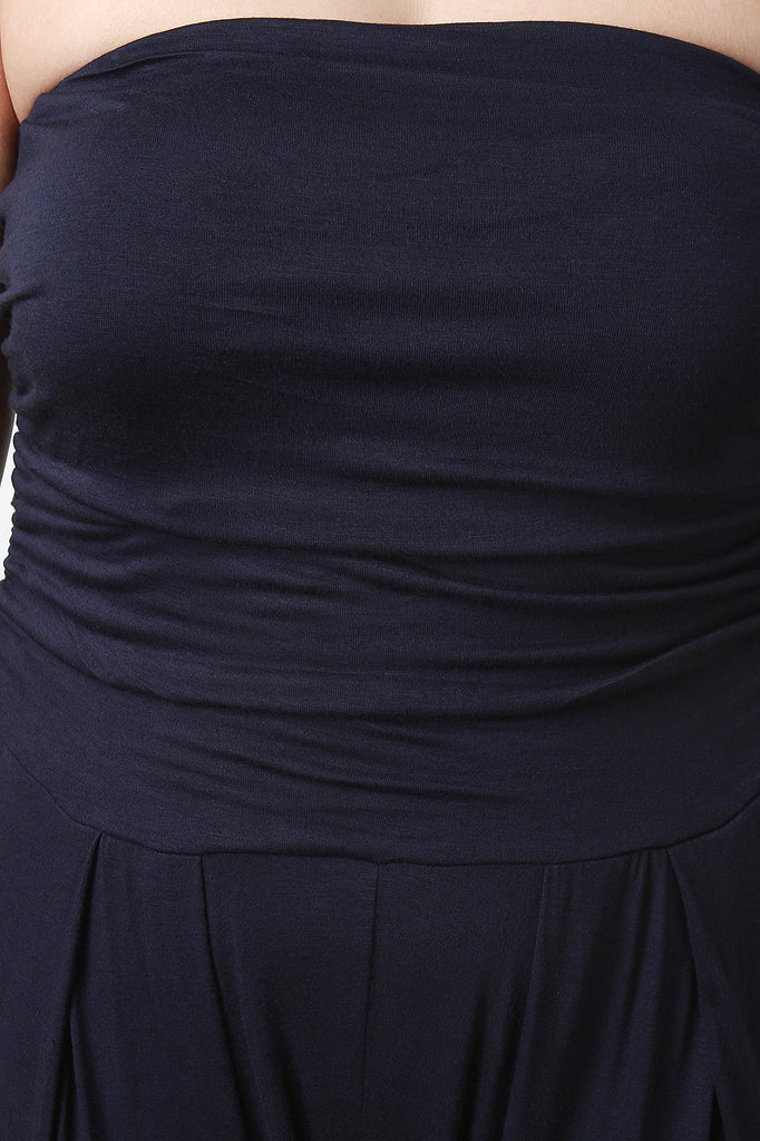 This cute jumpsuit features cinched detail and strapless structure for a fresh and comfortable feel. Finished with taper cut legs and front slant pockets. Accessories sold separately. Made in U.S.A. 95% Rayon, 5% Spandex.