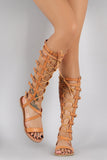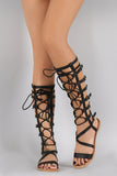 This unique sandal features an open toe silhouette, strappy construction with buckles accent, corset-style lace up closure, and lightly padded insole for comfort.