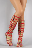 This edgy sandal features a tie dye print fabric, elasticized straps design shaft, decorative studs accent, lightly padded insole, and side zipper closure for easy on/off.