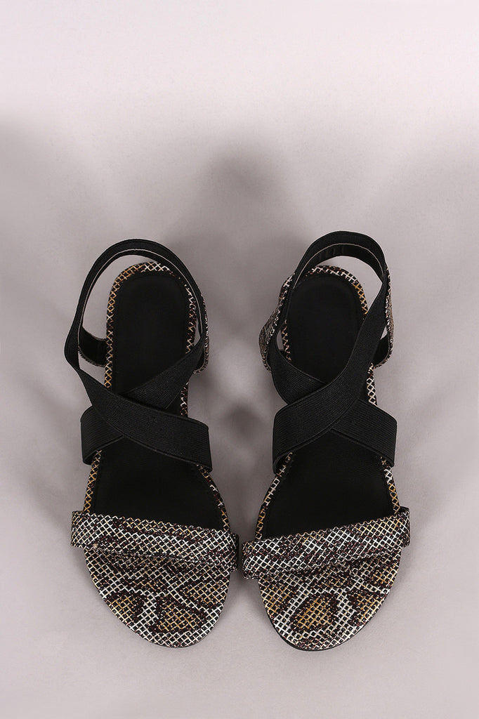 This glamorous snake-pattern fabric footbed and vamp strap. Finished with a lightly padded insole.