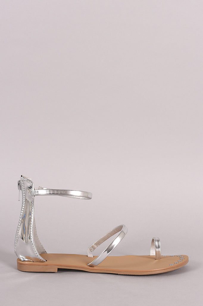 This fashionable toe ring straps across the ankle and vamp. Includes a shiny metallic design and back rear zipper closure for easy on/off.