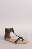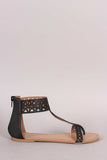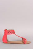 This chic sandal features a snake embossed vegan leather upper with perforated detail, t-strap construction, and convenient back-zip closure.
