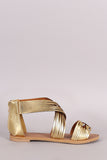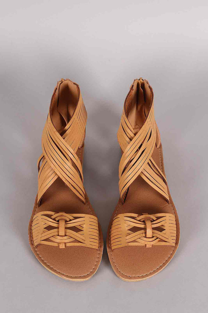 This delightful flat sandal features an open toe silhouette, crisscross strap with decorative slashes, woven strap across vamp, lightly padded insole, and convenient back-zip closure.