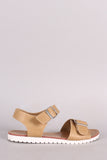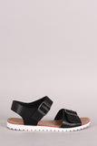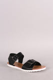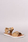 This fashionable open toe sandal features a single adjustable buckled band across vamp and a ankle strap with buckle fastening. Finished with a lightly padded insole.