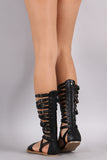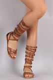This chic sandal features a strappy construction with buckles accent, crisscross strap across vamp, lightly padded insole, and convenient back-zip closure.