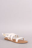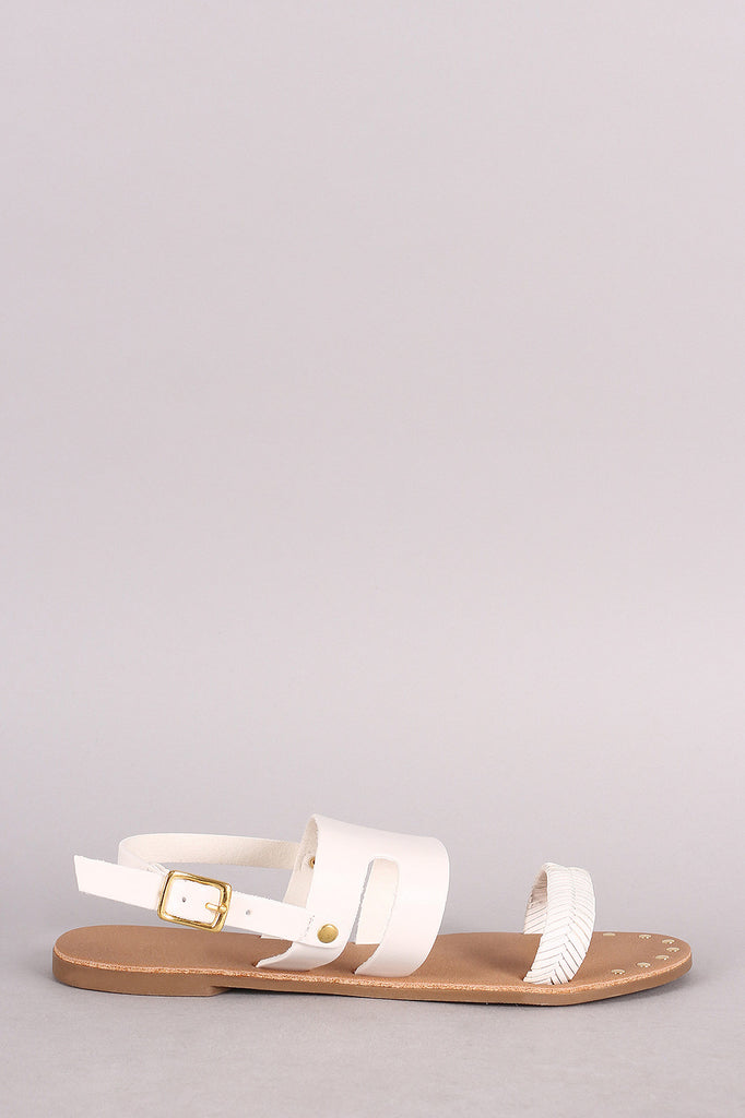 This cute flat sandal features a woven strap across vamp, studded accents at toe, and adjustable slingback strap with buckle closure.