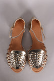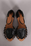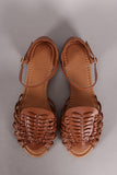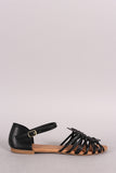 This adorable flat sandal features a peep toe silhouette, woven design vamp, lightly padded insole, and adjustable ankle strap with buckle closure.