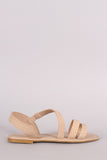 This casual-chic sandal features an asymmetrical straps adorned with polished dome studs, open toe silhouette, lightly padded insole, and easy slip-on construction.