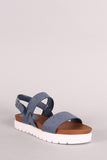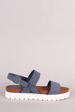 This lug sole , lightly cushioned insole, and adjustable ankle strap with side buckle fastening.
