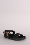 This edgy lug sole , lightly cushioned insole, and adjustable slingback strap with buckle fastening.