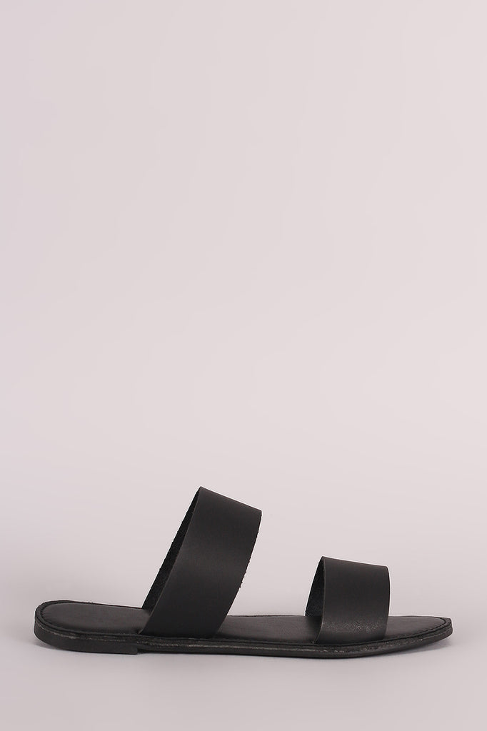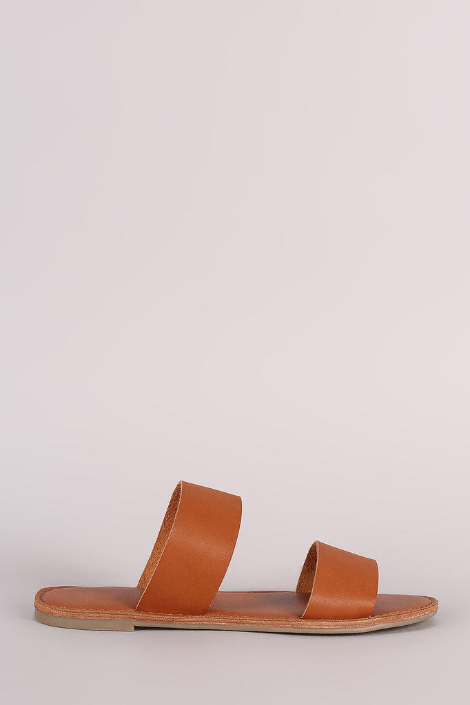 This casual flat sandal features double vegan leather upper wide bands across vamp, and easy slip-on construction. Finished with a lightly padded insole for comfort.