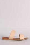 This casual flat sandal features double wide bands across vamp made of patent, and easy slip-on construction. Finished with a lightly padded insole for comfort.