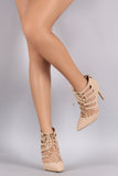 This hot Anne Michelle lace up design on vamp. Finished with a rear zipper closure for easy on/off.