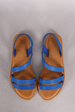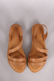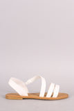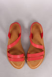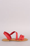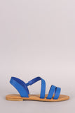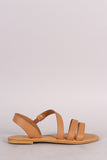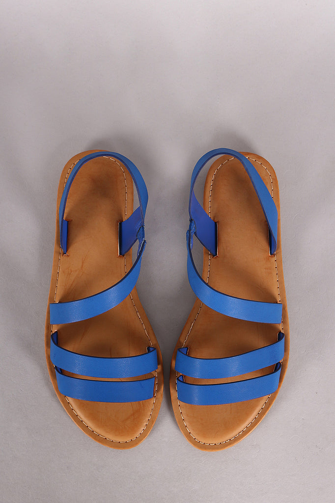 This summery flat sandal features an open toe silhouette with asymmetrical strappy construction and lightly padded insole for comfort.