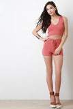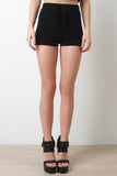These shorts are high-waisted silhouette, featuring a wide elastic waistband, soft rib knit fabrication and faux drawstring. Accessories sold separately. Shell: 95% Polyester. 5% Spandex.