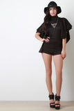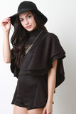 This chic romper features a high mock neckline, double layer flutter sleeves, elongated arm holes, back keyhole, double button closure at nape. Accessories sold separately. Made in U.S.A. 95% Polyester, 5% Spandex.