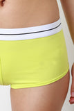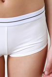 These sporty boy shorts feature a soft knit framed with a contrast elastic band. Accessories sold separately. 95% Cotton, 5% Spandex.