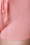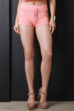 These casual shorts feature soft rib knit, elasticized waist, and self-tie drawstring. Accessories sold separately. Made in U.S.A. 55% Poly, 40% Rayon, 5% Spandex.