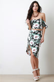 This Tropical flowers print throughout. Semi back zipper. Accessories sold separately. Self: 95% Polyester, 5% Spandex.
