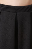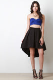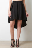 This box pleated skirt features a stitched on floral pattern, an elastic waistband, knit fabrication and high-low hemline. Accessories sold separately. Self: 96% Polyester, 4% Spandex.