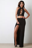 Lace-Up Denim Skirt