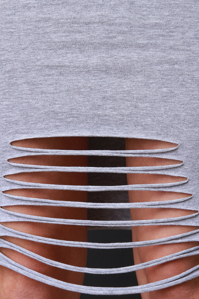 This casual midi skirt features a jersey knit fabrication, elasticized high waistline, figure-flattering silhouette, and finished with front distressed detail. Accessories sold separately. Made in U.S.A. 95% Cotton, 5% Spandex.