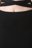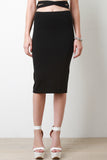 This pencil skirt features a high waisted seam with a crisscross straps design at front, stretchy sculpturing fit, and midi length hemline. Accessories sold separately. Made in U.S.A. 63% Rayon, 32% Polyester, 5% Spandex.