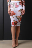 This refreshing skirt features a floral print on a semi-sheer mesh fabrication, elasticized waist band, and finished with a midi-length hemline. Accessories sold separately. Made in U.S.A. 95% Polyester, 5% Spandex.