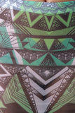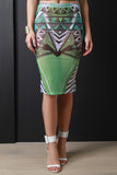 This bright skirt features a semi-sheer mesh fabrication with geometric tribal print, elasticized waist band, and midi-length hemline. Accessories sold separately. Made in U.S.A. 95% Polyester, 5% Spandex.